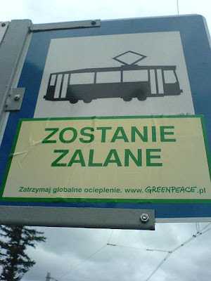 On several bus stops in several polish cities sticky note keeps informing: Will be flooded. Stop global warming.